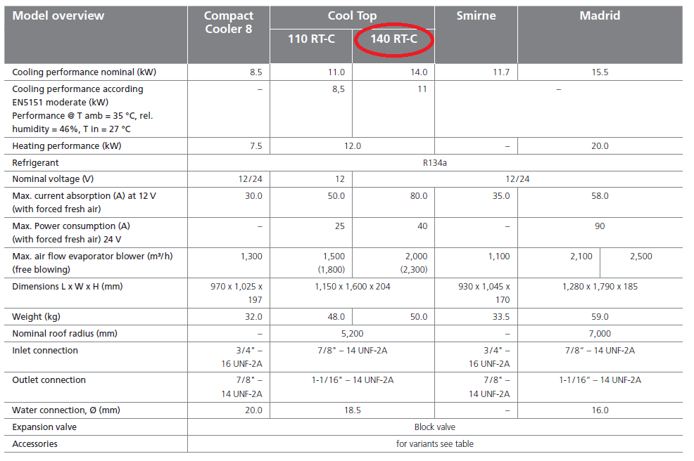 Klimatyzacja Webasto Cool Top 140 RT-C 12v lub 24v