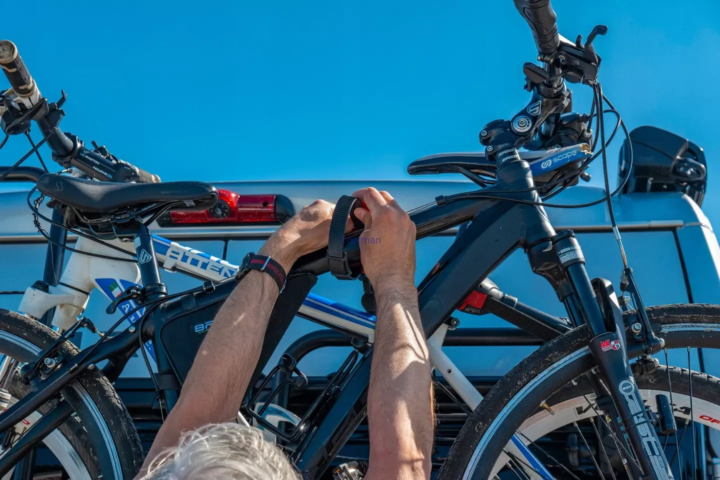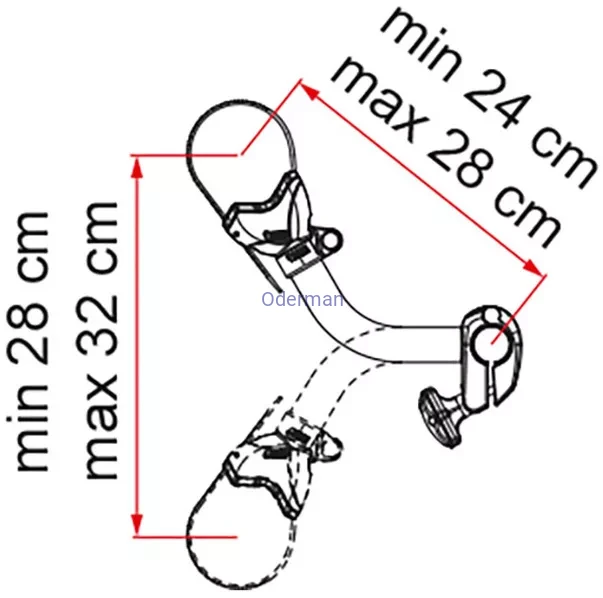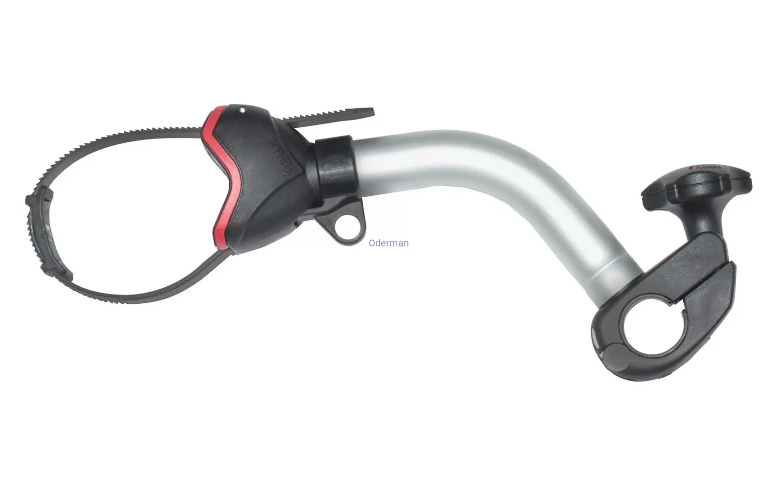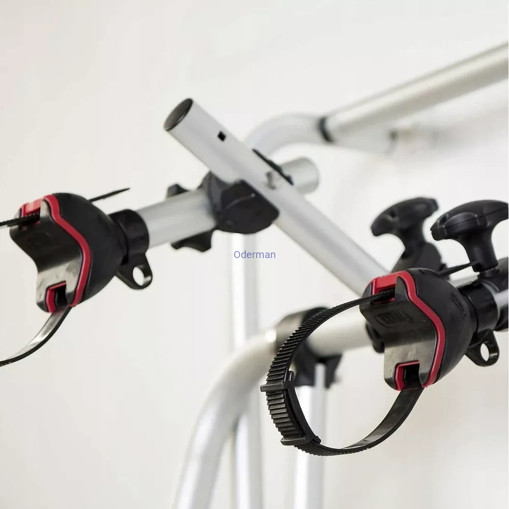 - Pokrętło, które mocuje blokadę rowerową do Carry-Bike w zmienionej pozycji, umożliwia swobodne obracanie obejmy